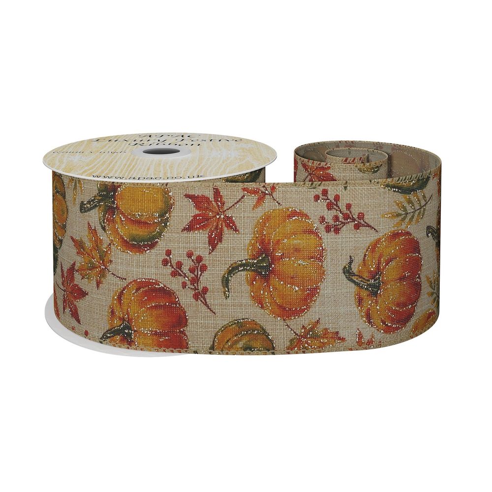 Autumn Ribbon with Pumpkins (63mm x 10 yards)