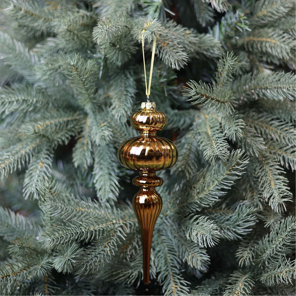 Bring timeless sophistication to your holiday decor with the Antique Gold Glass Elegance Finial. At 24cm tall, its graceful design and rich gold finish make it a stunning centerpiece for any festive setting.