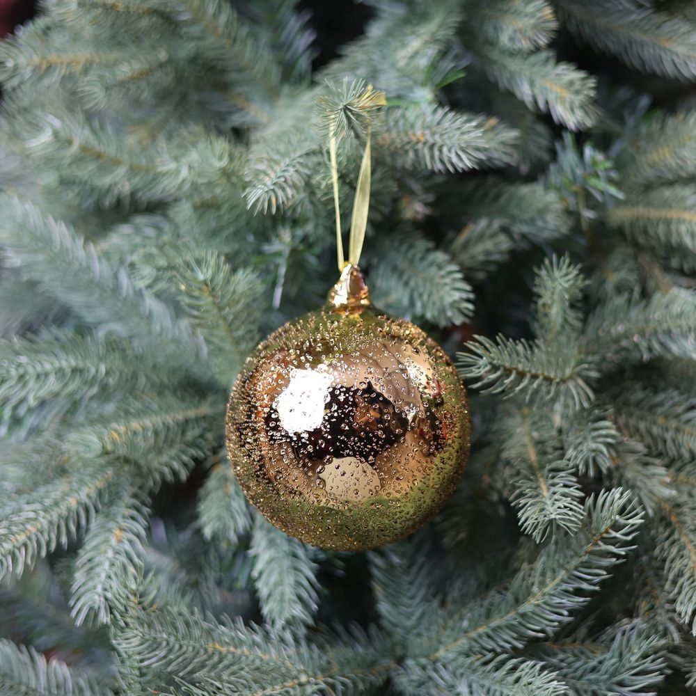 Illuminate your holiday decor with the Glass Turone Bauble in antique gold. At 12cm, its elegant design and warm, vintage-inspired hue create a luxurious, timeless addition to your festive display.