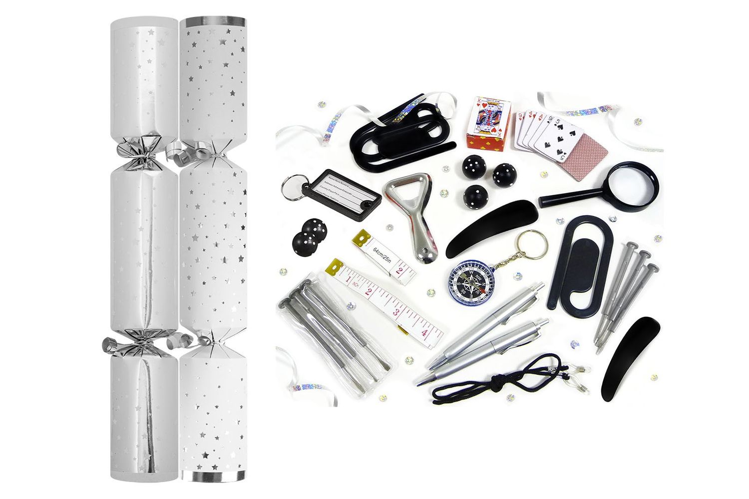 Featuring a sleek silver star design, these crackers are perfect for enhancing the holiday spirit at buffets, banquets, or seasonal restaurant decor. Each cracker includes a surprise, bringing excitement to Christmas dinners and large-scale celebrations. Ideal for high-volume holiday catering, they’re a stylish and festive choice for any event.