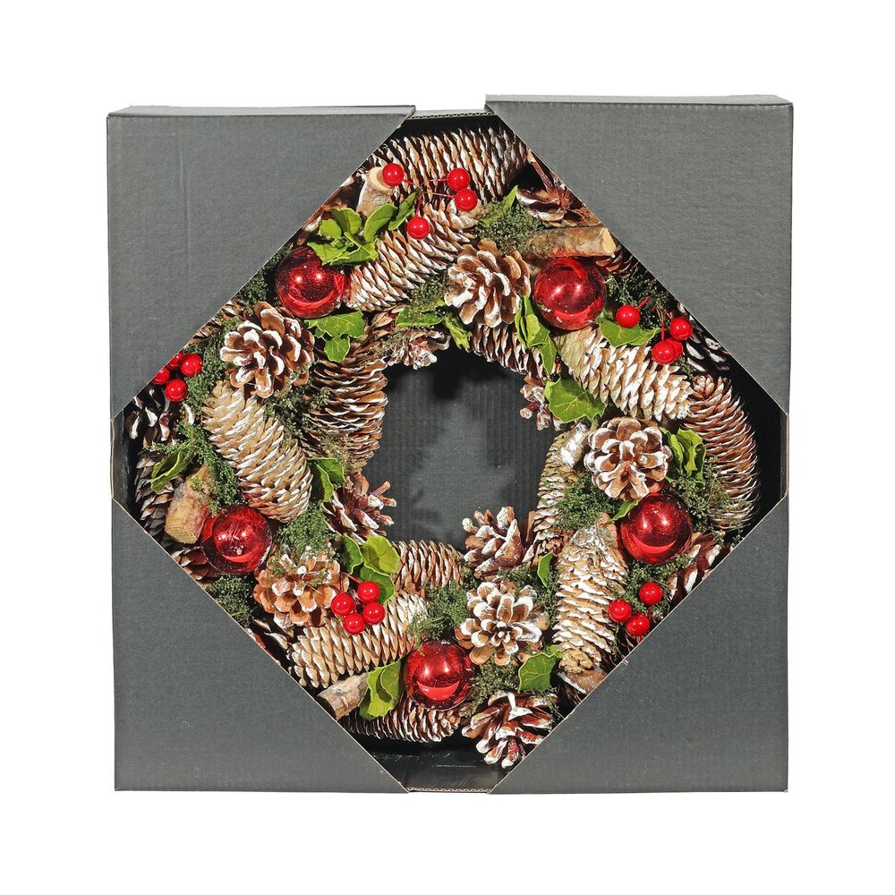Hang it on your door to welcome guests with a touch of festive sophistication or use it as a captivating centerpiece to infuse your interior with holiday spirit. The Bauble & Berry Wreath captures the essence of Christmas, making it the perfect addition to your seasonal decor. Embrace the timeless beauty of the season with this enchanting wreath, bringing joy and elegance to your home.