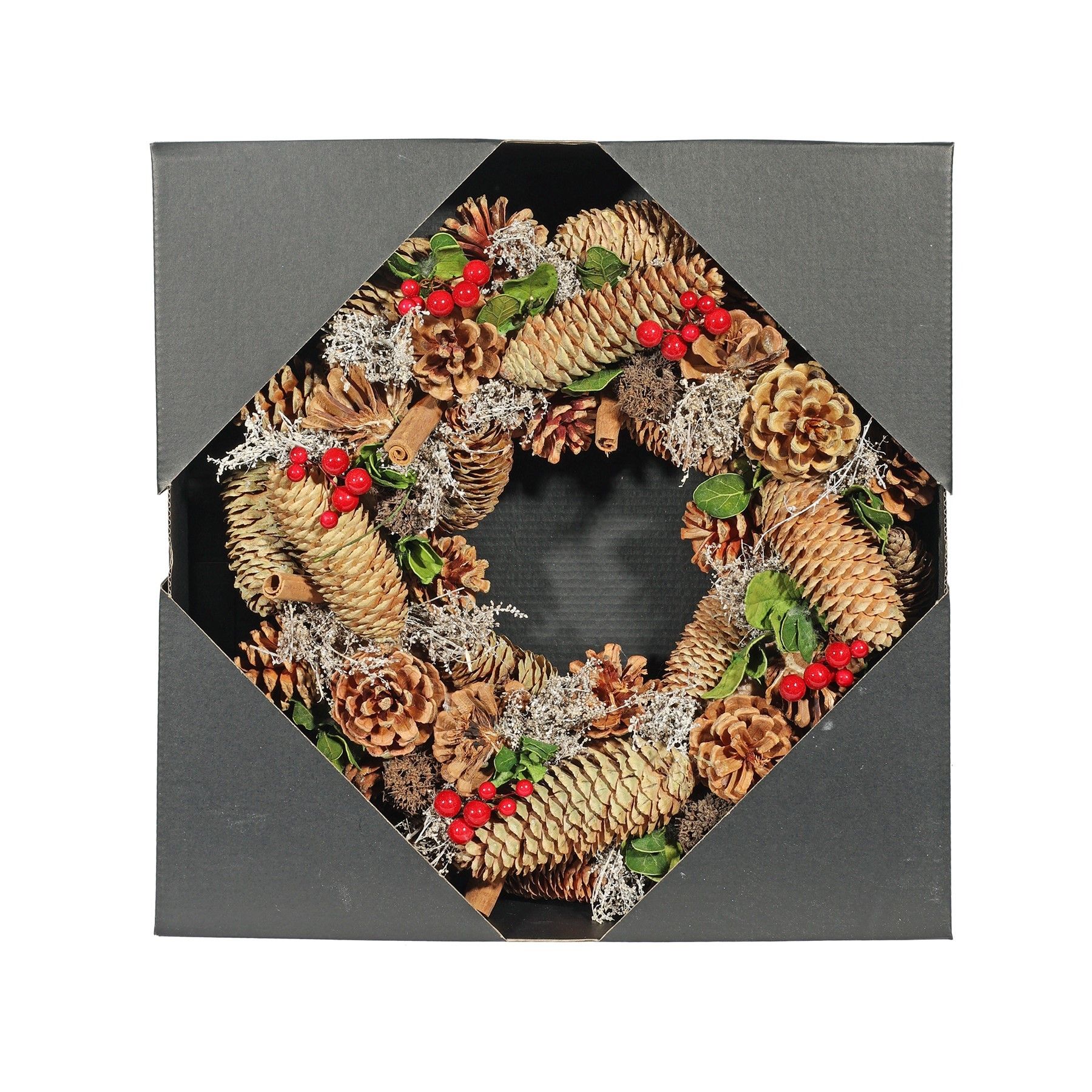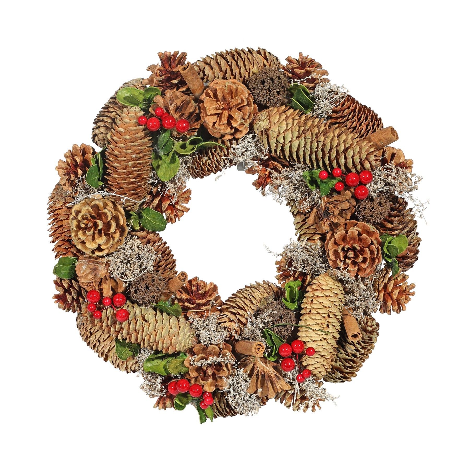 Embrace the spirit of Christmas with our Cinnamon & Berry Wreath, a charming 36cm holiday decoration. This beautifully crafted wreath captures the essence of the season with its warm cinnamon sticks and vibrant berry clusters. Its classic design instantly adds a touch of festive elegance to your door or interior decor, creating a warm and inviting atmosphere.