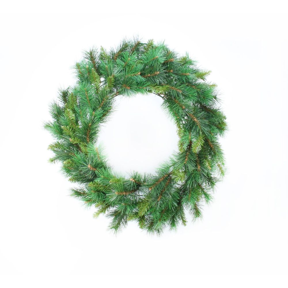 Hang this beautiful green pine wreath on your door or wall at Christmas time for an extra festive feel! This wreath has a simple style but can be decorated with artificial flowers, cones and ribbon to make it your own.