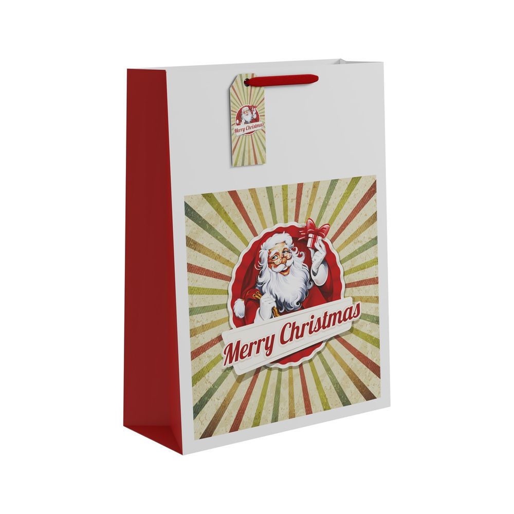 Spread the holiday cheer with our Extra Large Merry Christmas Santa Gift Bag. This delightful bag brings Santa's jolly spirit to life, featuring a festive depiction of Old St. Nick himself.