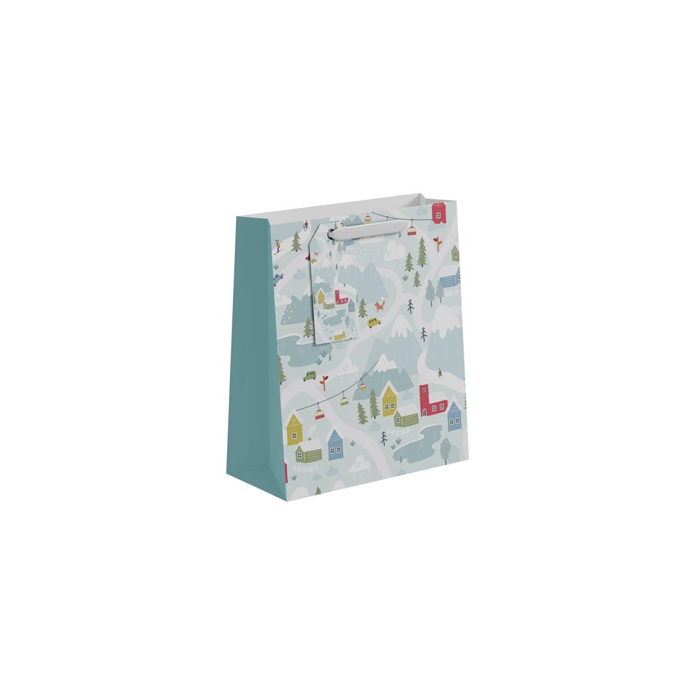 Elevate your Christmas gifting with our Medium Mountain with Cable Car Gift Bag. This picturesque bag captures the essence of a snowy mountain adventure during the festive season.