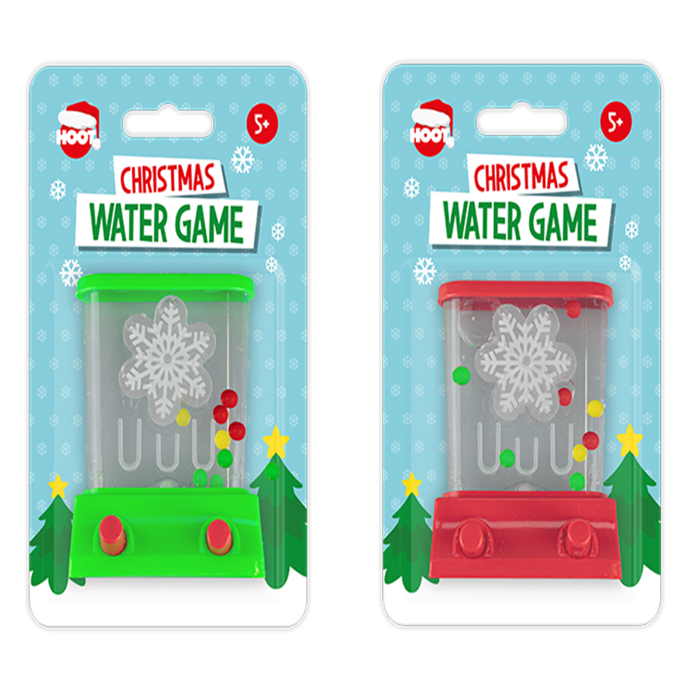 Enjoy festive fun with our Christmas Water Game, featuring handheld entertainment with a holiday twist. Each game showcases a cheerful theme and includes two buttons that push in to manipulate air and move seven colorful balls through water. Perfect for all ages, it provides engaging entertainment and challenges dexterity. Ideal as stocking stuffers or party favors, these games bring joy and excitement to Christmas gatherings. Embrace the holiday spirit with this interactive and portable game, offering hours of amusement and a delightful way to celebrate the season.
