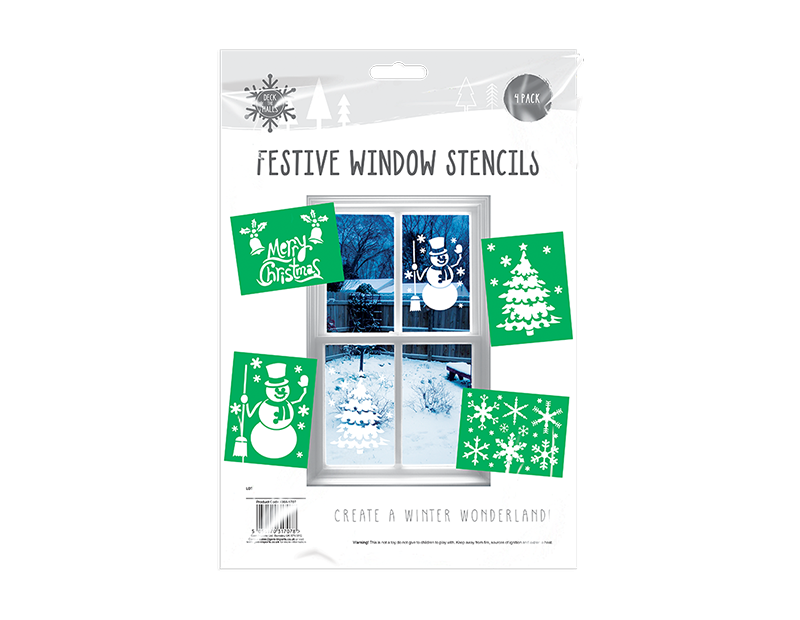 Decorate your windows with our pack of 4 Christmas Window Stencils, each measuring approximately 23cm x 18cm. Designs include a cheerful snowman, festive Christmas trees, delicate snowflakes, and a heartwarming 'Merry Christmas' message. Perfect for adding a festive touch to your home decor, these stencils are easy to use and reusable, allowing you to create beautiful holiday scenes with ease. Ideal for both adults and children, they bring creativity and seasonal spirit to your window displays. Embrace the joy of Christmas with these versatile stencils, perfect for brightening up your living space during the holiday season.