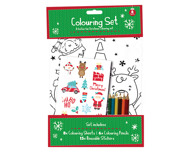 Unleash festive creativity with our Christmas colouring set! This delightful kit includes eight A4 colouring sheets, each adorned with charming holiday scenes waiting to be brought to life. Accompanying the sheets are six colouring pencils in assorted rainbow colors, perfect for adding vibrant hues to your artwork. To enhance the fun, we've included 15 reusable Christmas character stickers, ideal for decorating finished pieces or adding a playful touch to your holiday cards and crafts. Perfect for keeping little hands busy and imaginations soaring, this set is a wonderful way to celebrate the joy and magic of the season.