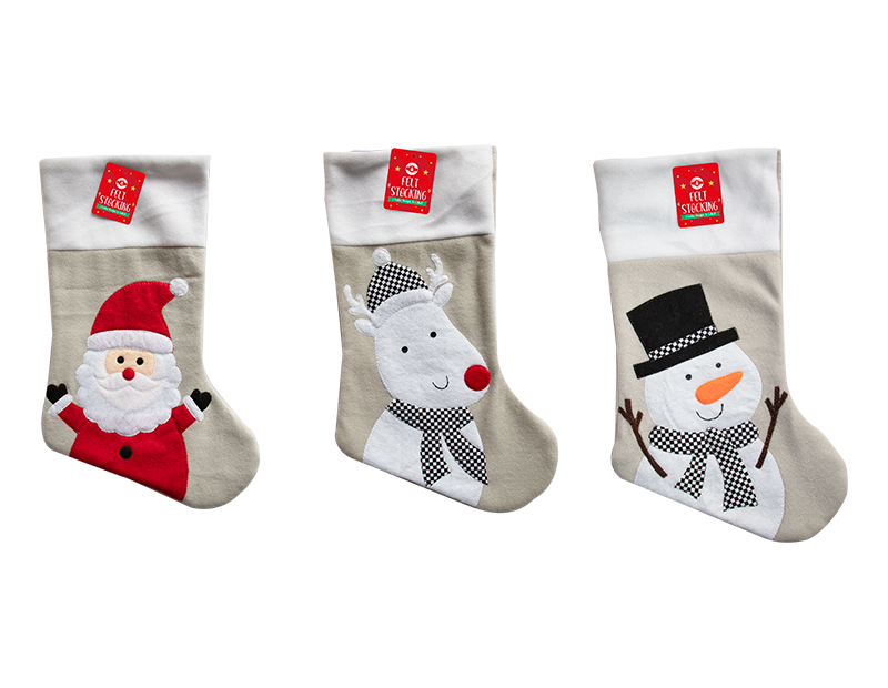Whether hung by the fireplace, staircase, or at the foot of your bed, this stocking creates an atmosphere of warmth and anticipation during the Christmas season. Let it become a cherished part of your holiday traditions, and fill it with love and surprises for your loved ones. Make this Christmas unforgettable with our Grey Embroidered Felt Stocking.