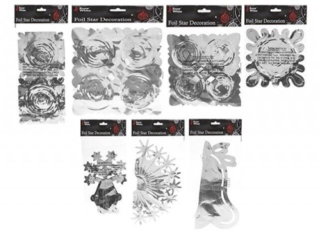 Silver Foil Decorations (7 Assorted Designs)