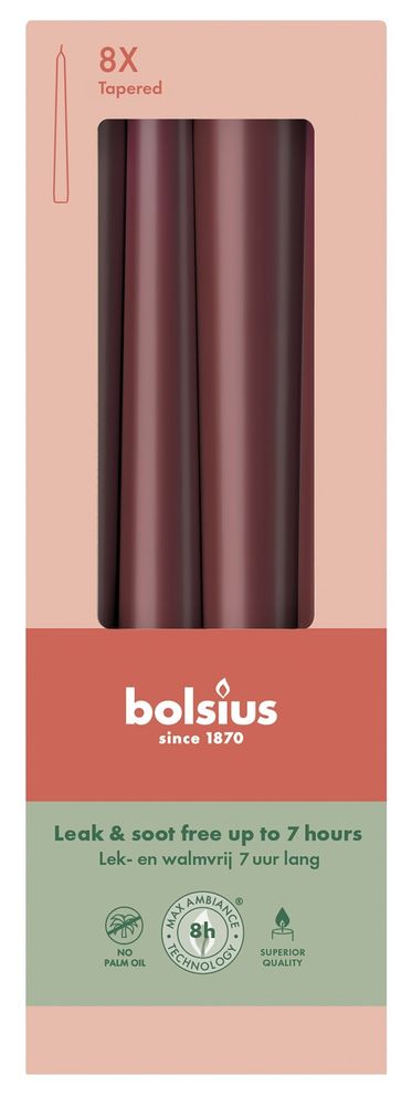 Elevate your home decor with the sophisticated charm of Velvet Red Bolsius Tapered Candles.
