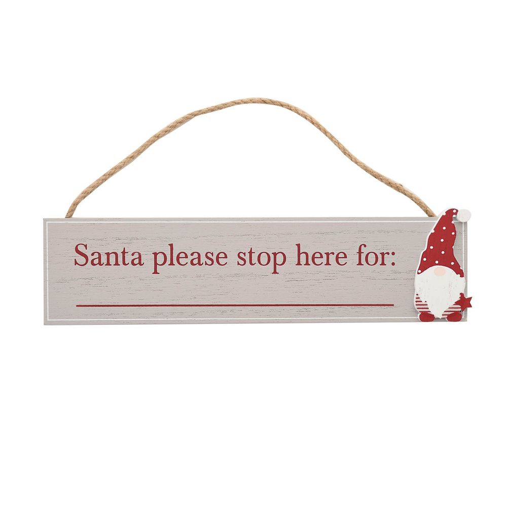 This 'Please Stop Here' plaque is a cheerful and stylish decoration option for the festive season. With a cute gonk-inspired santa figure, and an on-tred polkadot design, this would look perfect hanging in any living space this Christmas.