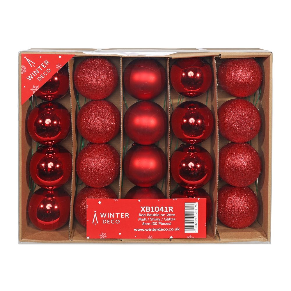 Add festive cheer to your tree, wreath, garland or display with beautiful red baubles that will shimmer and sparkle in the light for years to come! Christmas isn't complete until you've hung these little bundles of joy – available now in packs of 20 at a great price. Get your hands on some Red Baubles on Wire this season and get ready to be dazzled by each and every sparkly finish!