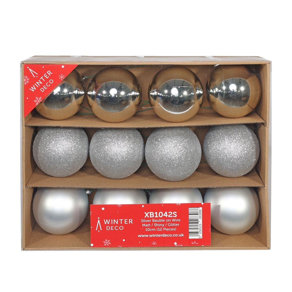 Silver Bauble on Wire - Matt/Shiny/Glitter (Pack of 12)