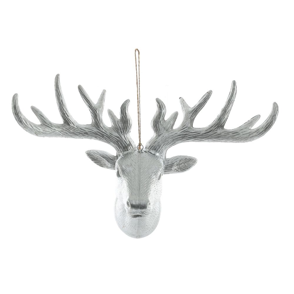 Metallic Reindeer Head Hanging Decoration - Silver (30cm)