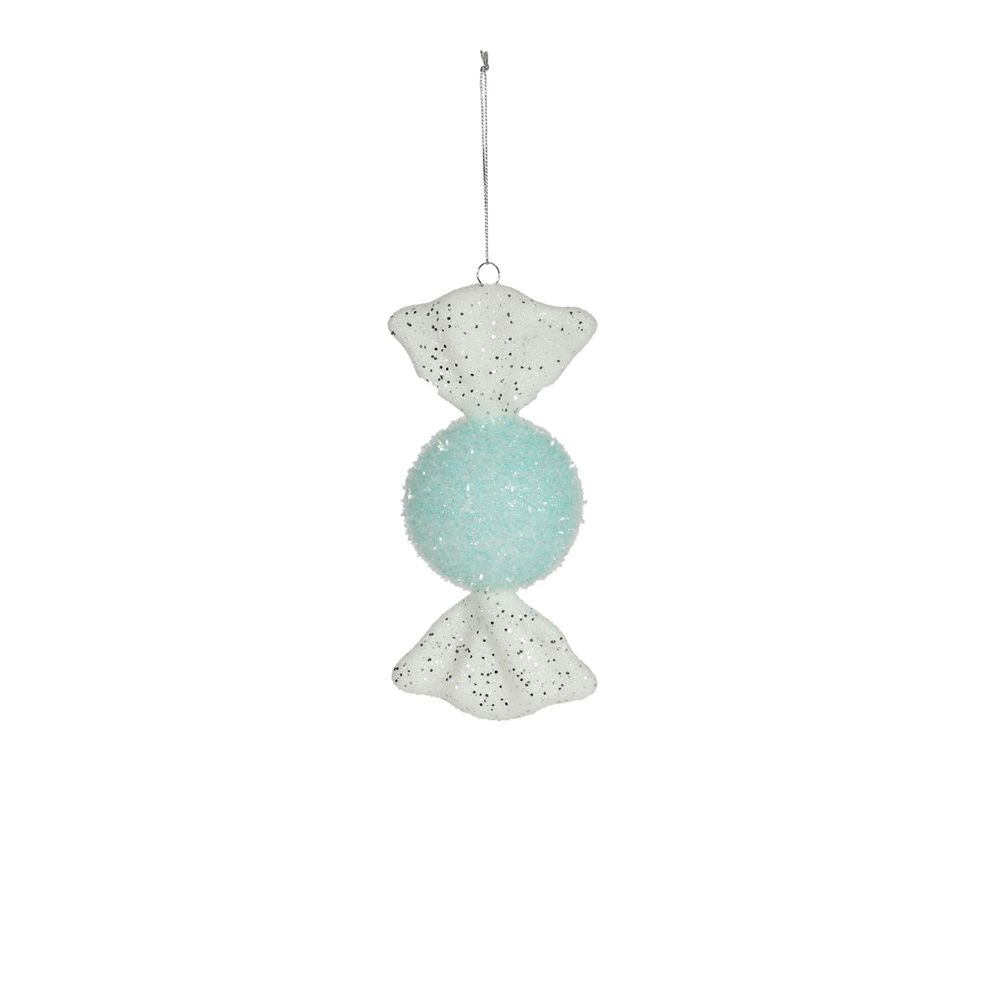 Perfect for a candy-themed tree or adding fun accents to any holiday display, this hanging decoration is sure to stand out. Its soft turquoise hue and sweet design make it a must-have for anyone looking to enhance their Christmas decor with a touch of sweetness.