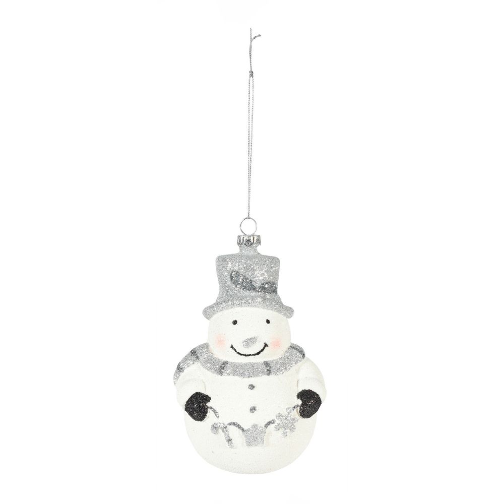 Perfect for tree decoration, its white hue and shimmering details reflect the joy of the season. Crafted with attention to detail, it enhances holiday ambiance effortlessly. Whether hung individually or in clusters, it promises to delight both children and adults alike. Embrace the festive spirit with our White Snowman Hanging Decoration, a must-have for merry Christmas celebrations.