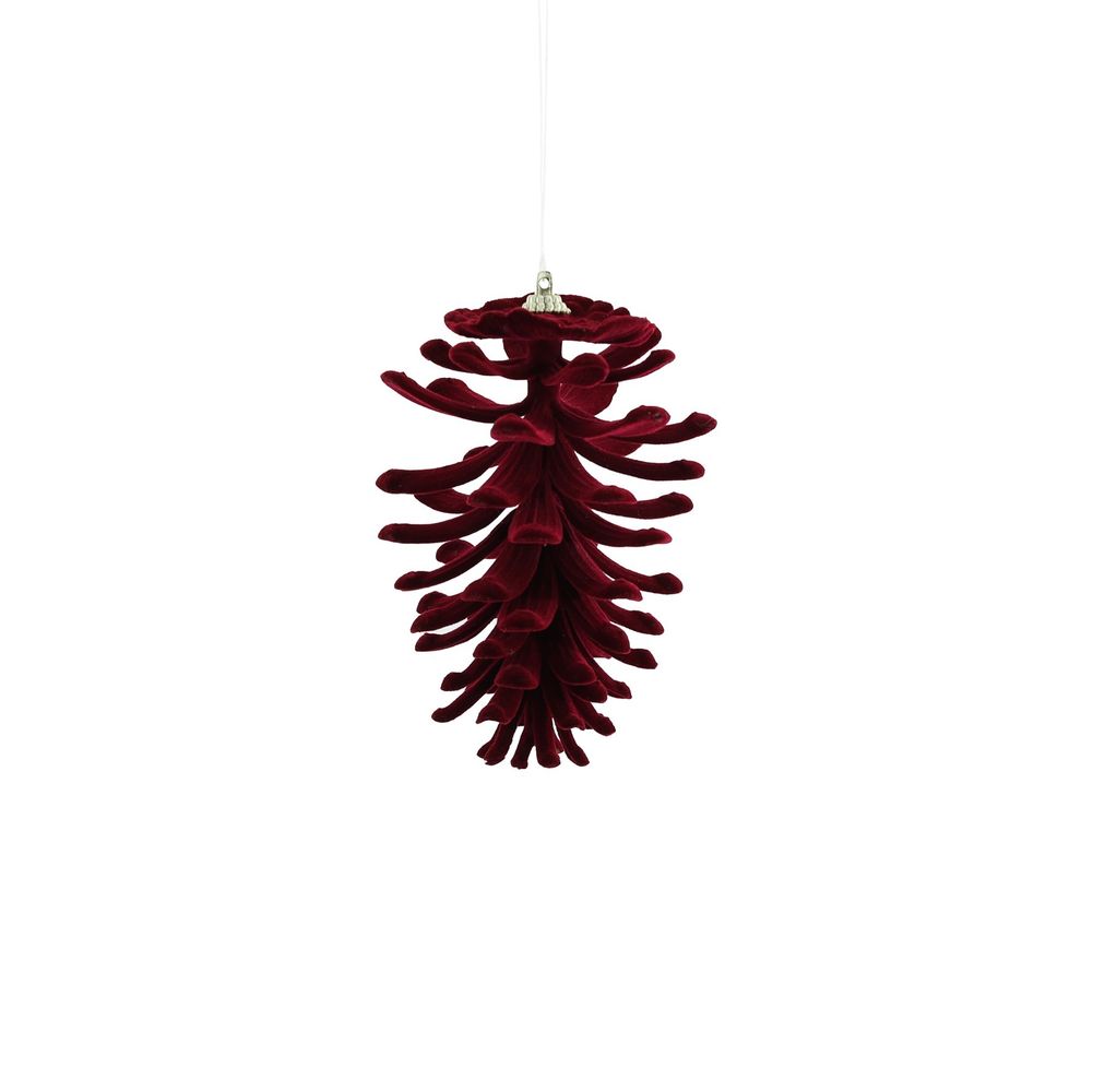 Flocked Pine Cone Hanging Decoration - Burgundy (13cm)