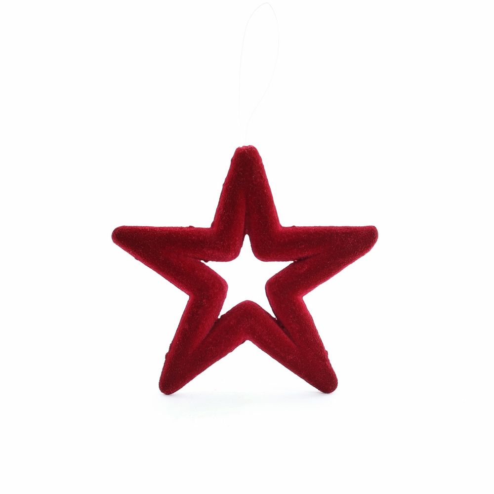 Flocked Star Hanging Decoration - Burgundy (12cm)