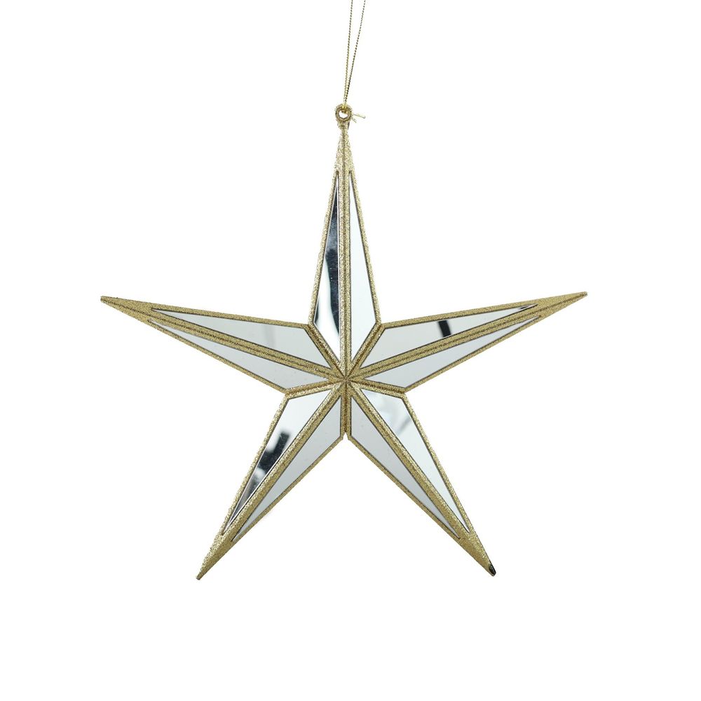 Enhance your decor with the Mirror Star Hanging Decoration in gold.