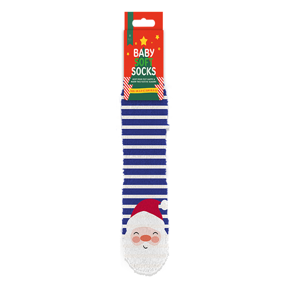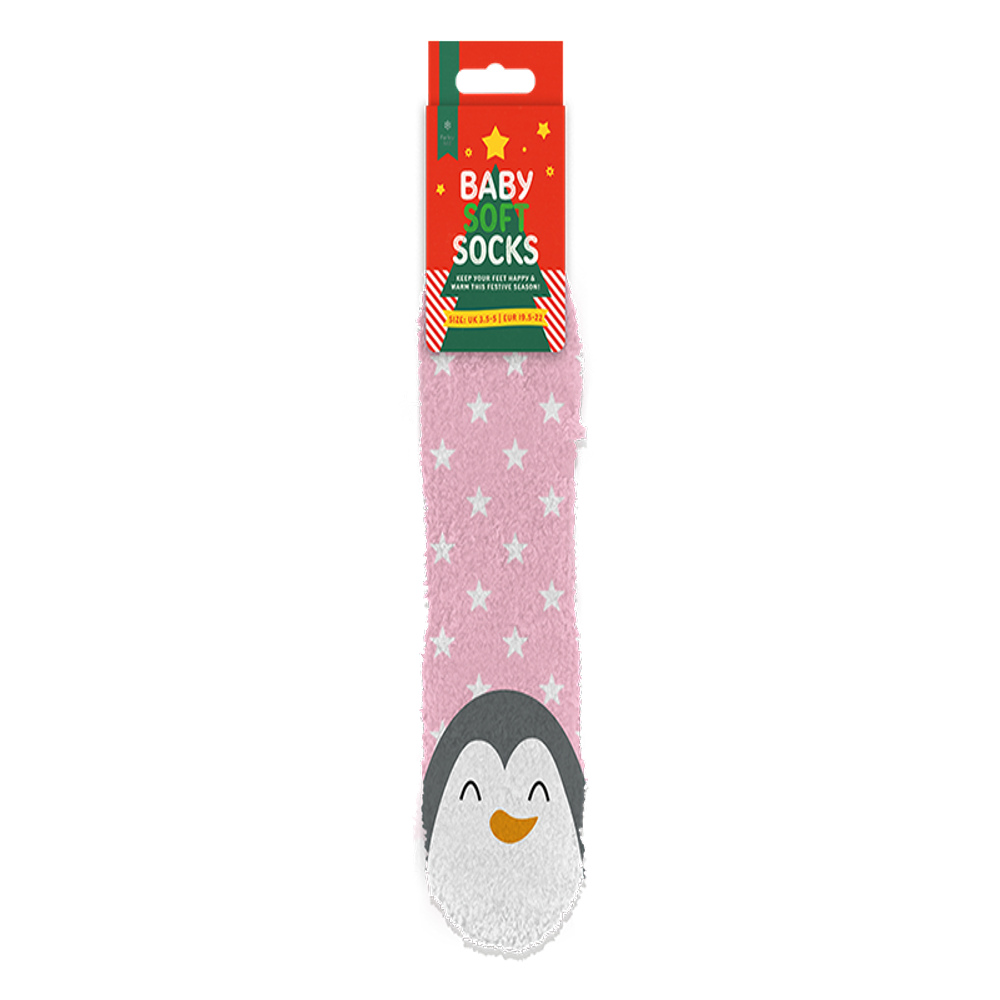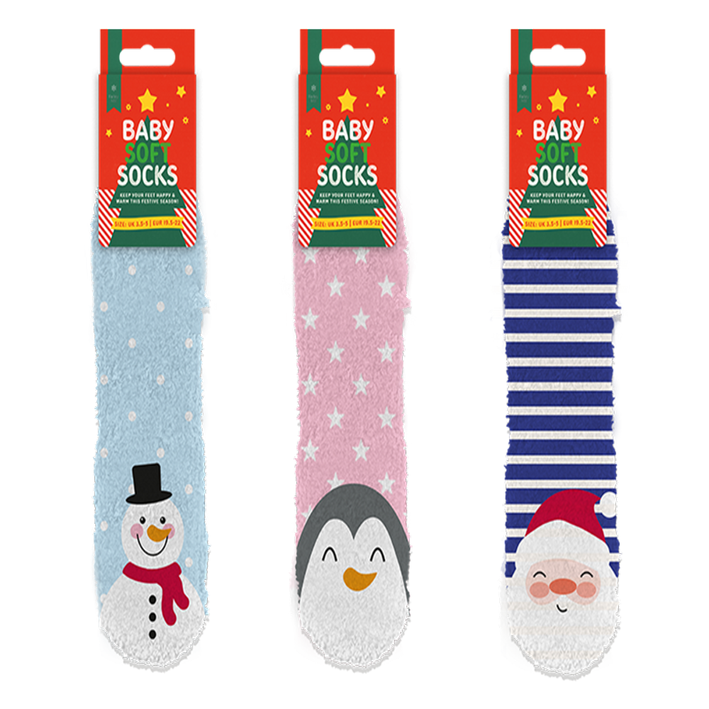 Wrap your little one's feet in warmth and whimsy with our Baby Supersoft Printed Socks, featuring assorted designs like Santa, snowman, and penguins. Crafted from ultra-soft materials, these socks ensure comfort and coziness for delicate baby feet. Each pair boasts adorable holiday-themed prints, perfect for adding a festive touch to your baby's outfit. Ideal for keeping tiny toes warm during chilly winter days or as a charming gift, these socks offer both practicality and seasonal cheer. Embrace the joy of the holidays with these cuddly and adorable baby socks, designed to make every moment with your little one extra special.