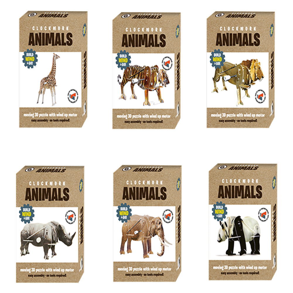 Ignite creativity with our build your own clockwork animal kits! Each box contains 15 pre-cut pieces that effortlessly slot together, empowering children to assemble, wind up, and watch their creation come to life. Available in various designs like giant panda, elephant, giraffe, lion, rhinoceros, and tiger, these collectible animals promise hours of imaginative play. Complete with a box for storage and easy-to-follow instructions, they're perfect for ages 5 and up. Ideal for fostering dexterity and curiosity, these kits combine educational value with interactive fun, making them a delightful choice for young animal lovers and budding engineers alike.