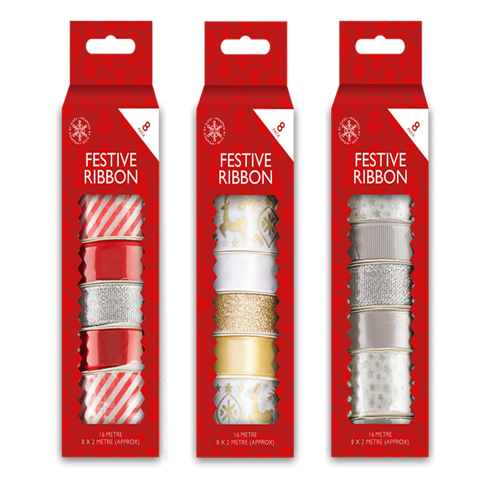 Enhance your festive gift wrapping with this pack of 8 Christmas ribbons, featuring an assortment of delightful designs. Each ribbon is 2 meters long, perfect for adding that extra special touch to your presents. The variety includes elegant satin, sparkling glitter, and charming printed patterns, ensuring a ribbon for every gift. Whether you're wrapping for family or friends, these ribbons will bring a touch of Christmas magic to your holiday season. Make your gifts stand out under the tree with these festive and stylish ribbons, perfect for celebrating the joy of Christmas.