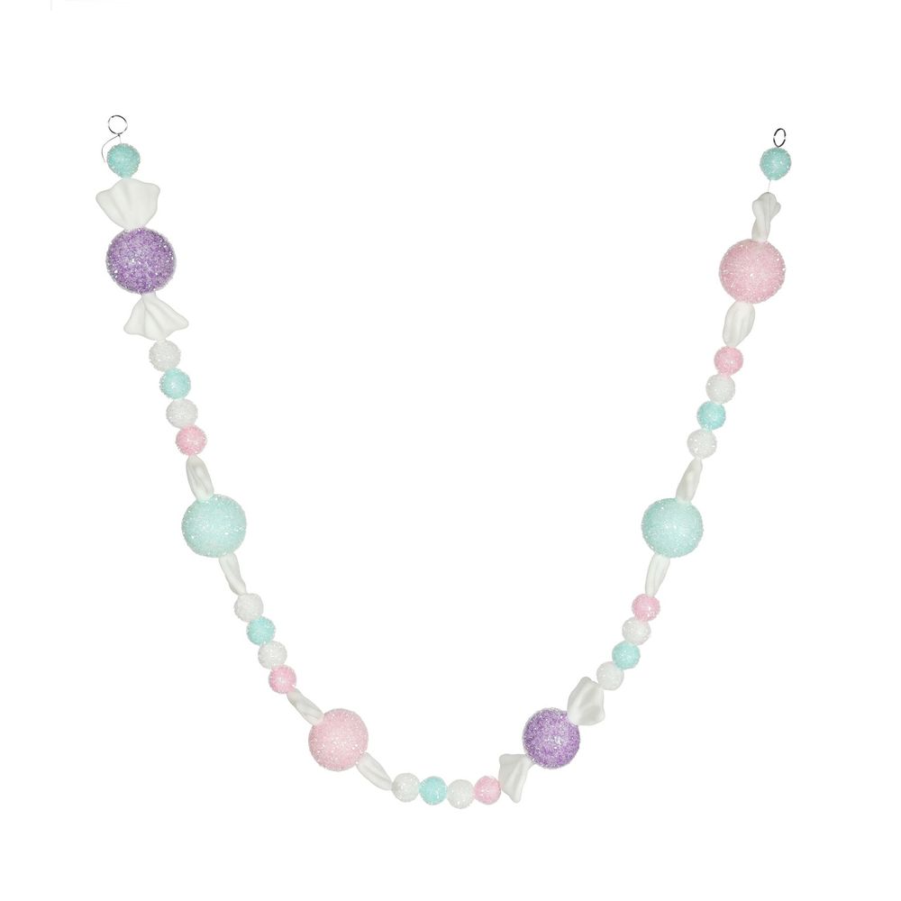 Enhance your holiday decor with our Pastel Candy Garland (1.83m). This charming garland features a delightful mix of turquoise, pink, and purple candy ornaments, perfect for adding a whimsical touch to your Christmas decorations. Measuring 1.83m, it's ideal for draping across mantels, staircases, or doorways, creating a festive and cheerful atmosphere.