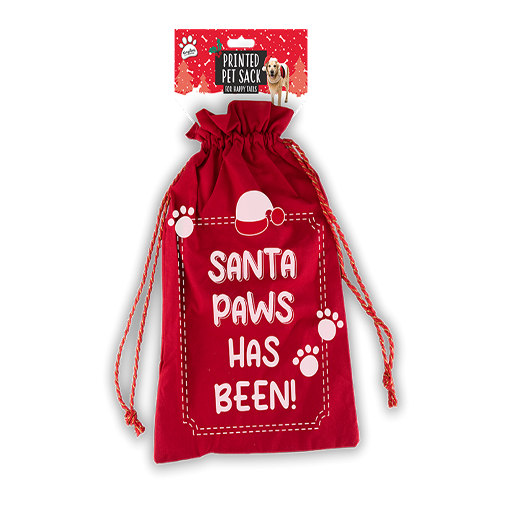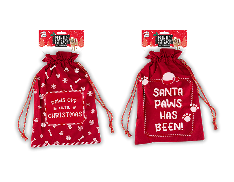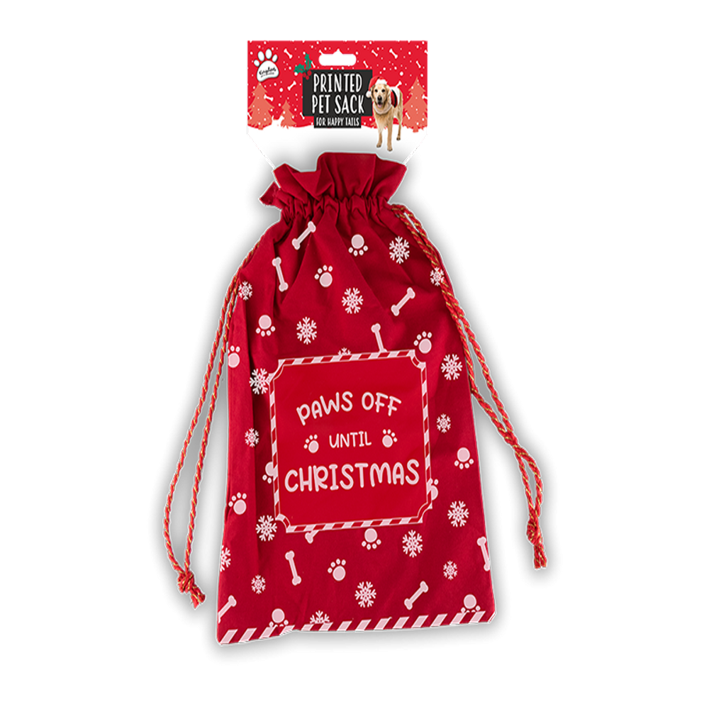 Treat your pets this Xmas with our delightful Printed Pet Christmas Sack, available in assorted designs. Made from high-quality cotton, this festive sack features a sturdy drawstring closure with charming red and white detailing. Each sack showcases a fun slogan and an adorable design on the front, perfect for storing gifts for your beloved dogs. Ideal for wrapping up treats, toys, and other goodies, this pet Christmas sack adds a touch of holiday cheer to your gift-giving. Make your pets feel special this festive season with this stylish and practical gift sack.