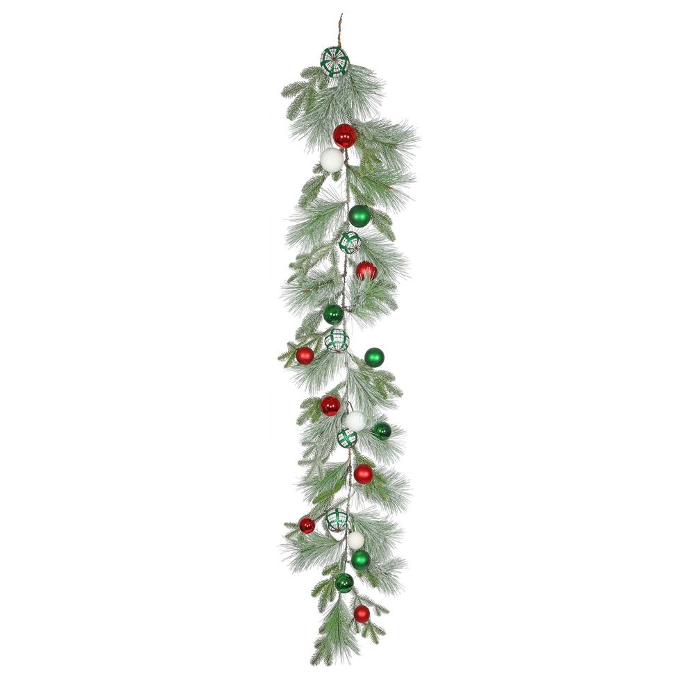 Snowy Mixed Foliage & Bauble Garland (180cm)