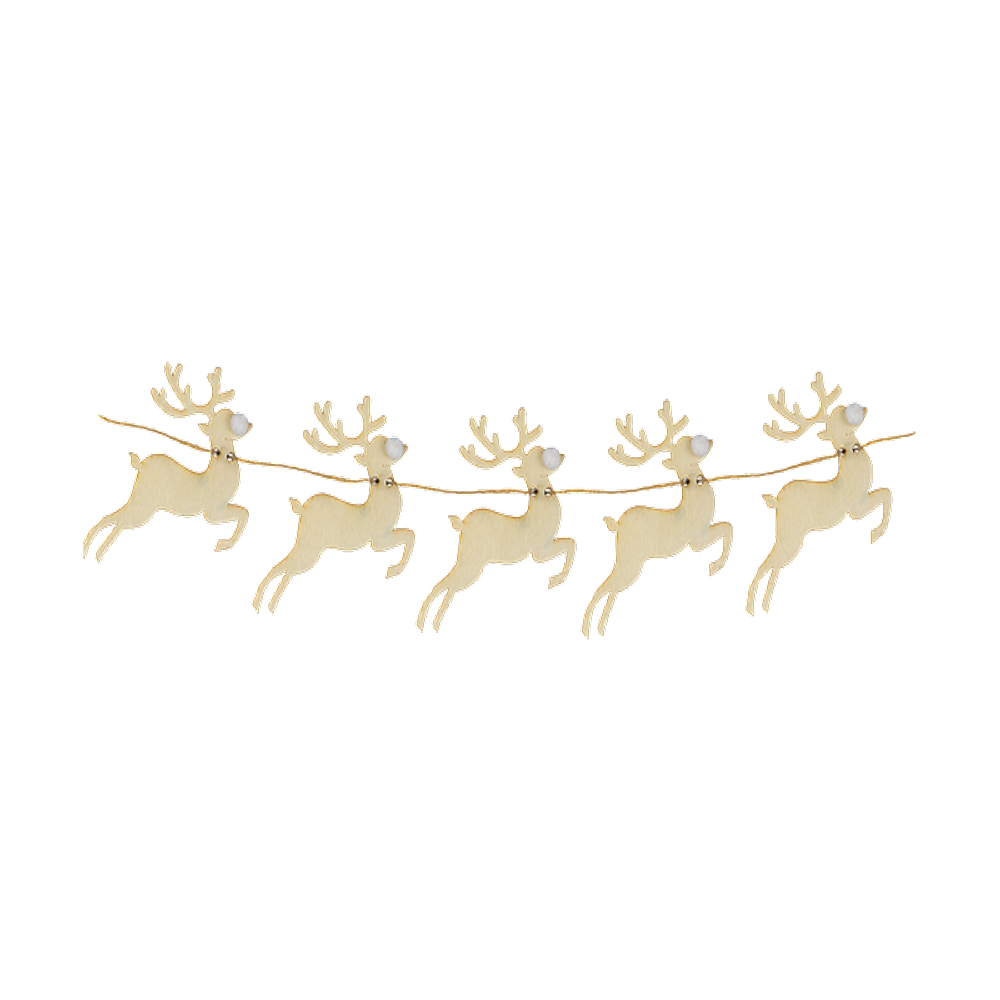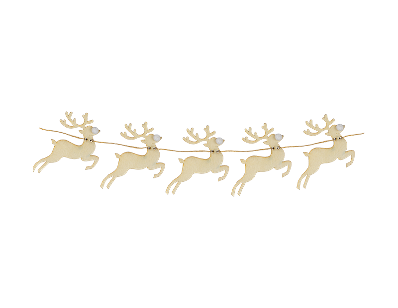 Add a festive touch to your home with our charming wooden reindeer bunting. Measuring 1.5 meters in length, this delightful decoration features intricately crafted wooden reindeer strung together on a sturdy 1.5-metre string. Already pre-assembled for your convenience, it can be easily hung across banisters, mantlepieces, or doorways, bringing a rustic holiday cheer to any space. Perfect for adding a cozy, woodland vibe to your Christmas decor, this reindeer bunting is a simple yet elegant way to celebrate the season.