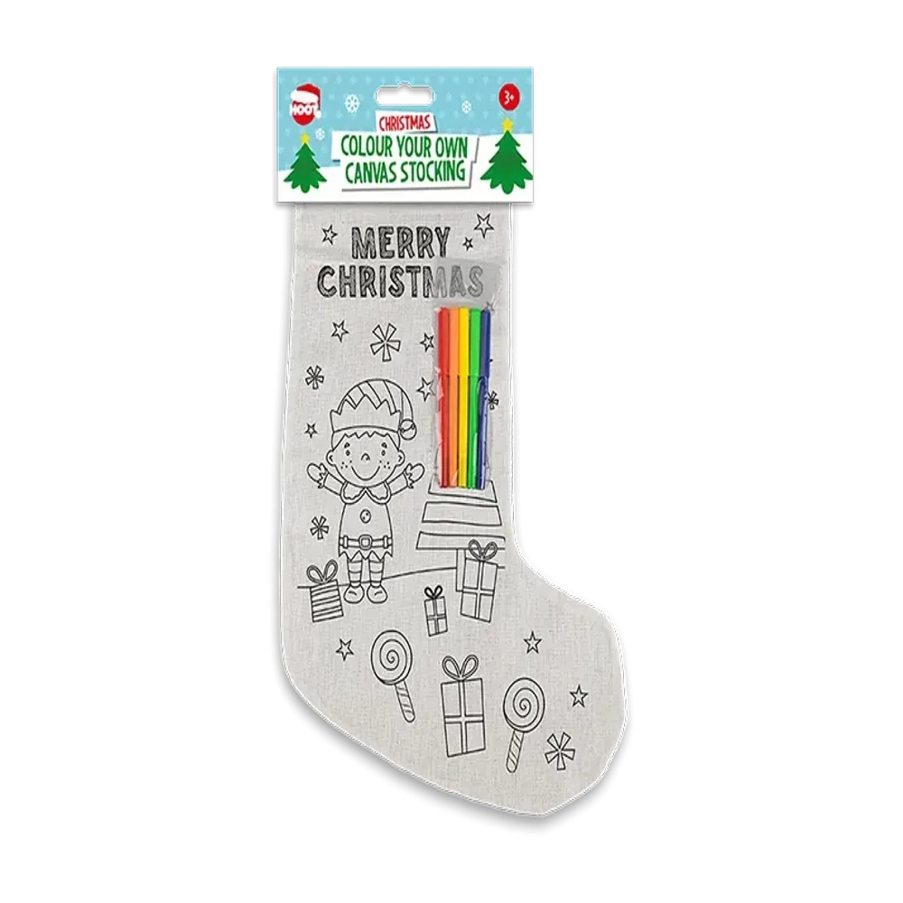Make Christmas extra magical with our Colour Your Own Canvas Stocking! Perfect for kids and creative adults alike, this festive stocking features a fun printed design on durable canvas, ready to be brought to life with colour.