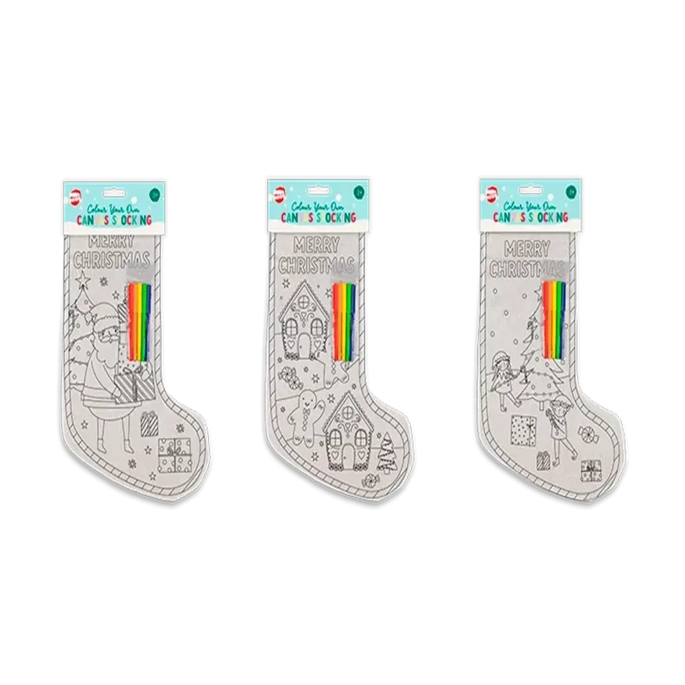 Each stocking comes with a five colouring pens so you can start decorating straight away.