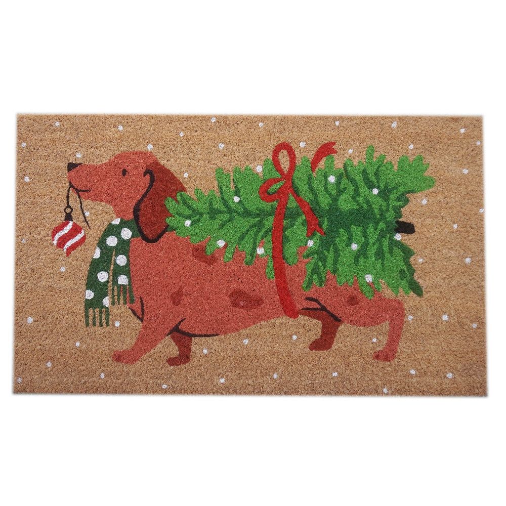 Welcome the festive season with our charming Festive Dachshund with Tree Doormat, designed to bring holiday cheer to any doorstep. Measuring 45x75cm, this delightful doormat features an adorable dachshund adorned in a festive outfit and a beautifully decorated Christmas tree, sure to impress your guests. Crafted from high-quality, durable materials, it effectively traps dirt and moisture, keeping your home clean and tidy. The vibrant colors and detailed design will remain bright and beautiful throughout the holidays, thanks to its fade-resistant properties. Perfect for pet lovers and holiday enthusiasts alike, this doormat effortlessly combines function and festive flair.
