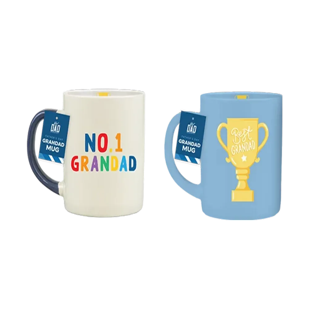 Crafted from high-quality ceramic, this mug boasts a striking blue finish and features a bold 'No.1 Grandad' design, making it a thoughtful and heartwarming gift for any occasion. The giant size of this mug ensures there's always room for an extra dose of their favorite beverage, whether it's coffee, tea, or hot chocolate. Its sturdy handle makes it comfortable to hold, and the spacious interior allows for easy cleaning. Dishwasher and microwave safe, this mug is as practical as it is meaningful, making it a delightful addition to any grandad's morning routine.