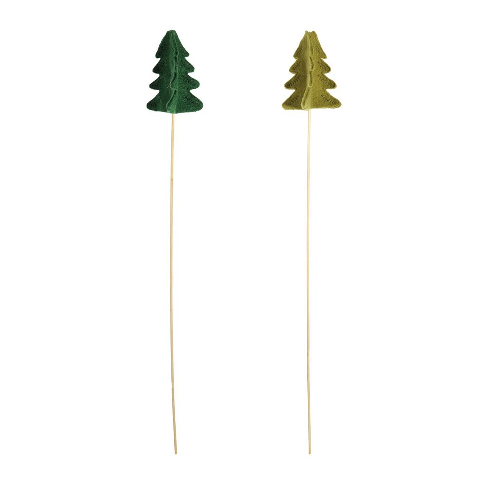 These intricately crafted decorations bring a touch of nature-inspired charm to any festive setting. Their lush green hues and felt texture mimic the beauty of real evergreens, while the convenient stick design allows for versatile placement.