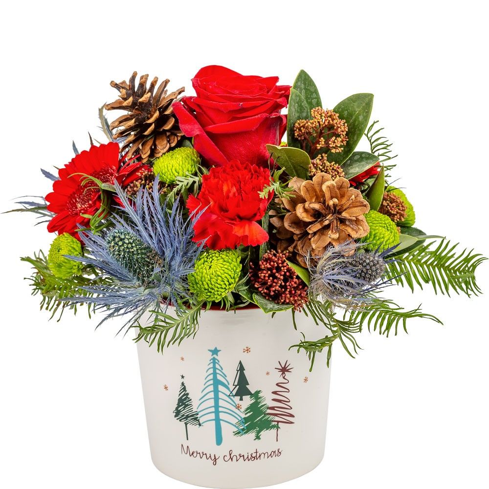 Enhance your home decor with the Treetops Glisten Ceramic Pot, a beautifully crafted piece that exudes sophistication and charm. With a festive design and ample space, the pot is ideal for holding your favourite Christmas plants, flowers or decorative items. Its robust ceramic construction ensures durability, while the subtle elegance seamlessly blends with both contemporary and traditional interiors.