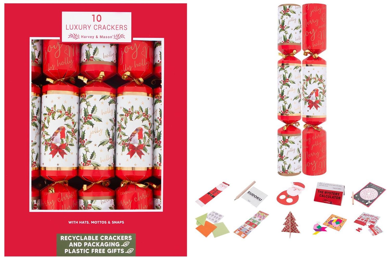 Add a touch of elegance to your celebrations with these 10 Luxury Holly/Robin Crackers.