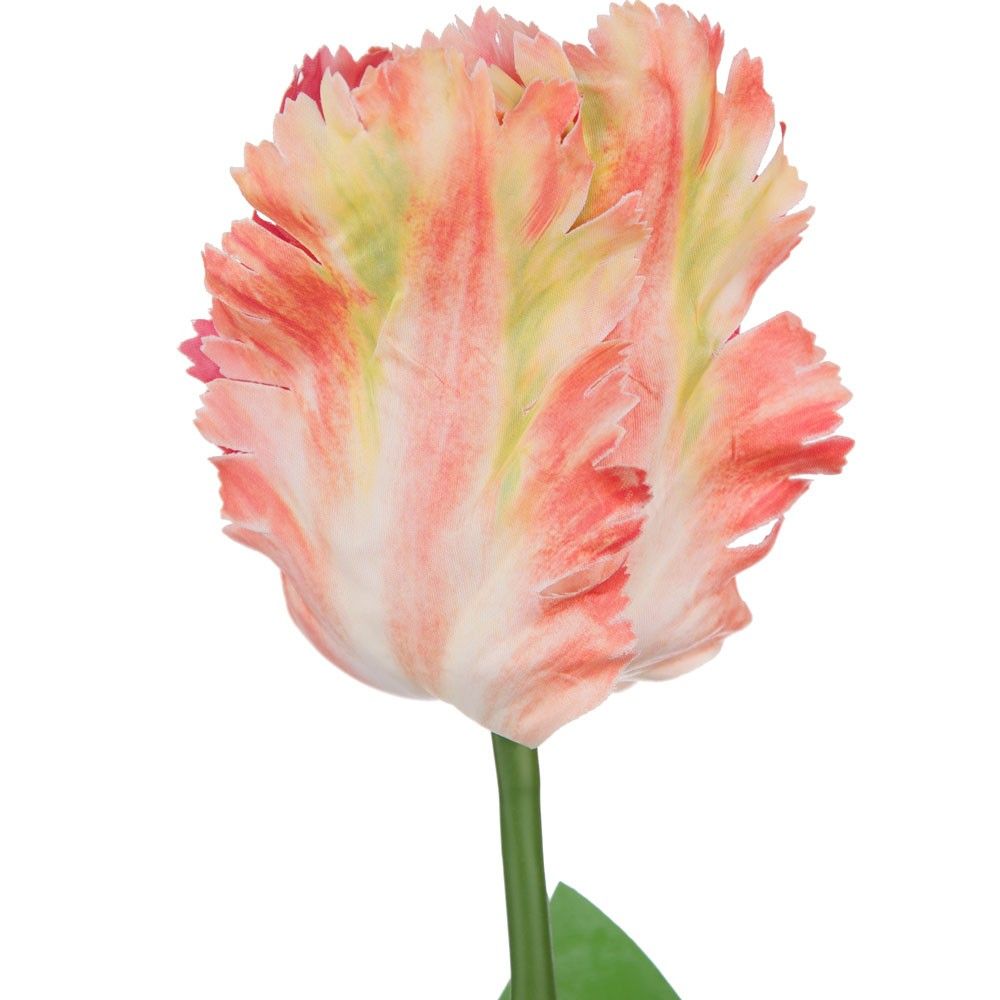 A premium, hyper realistic Parrot tulip stem in a beautiful coral colour.