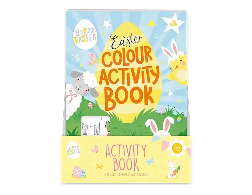 Each book also includes a sheet of colorful stickers and a pack of 6 assorted crayons, making it a great addition to Easter baskets or holiday fun.