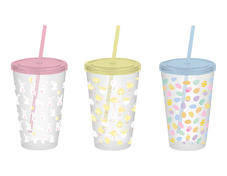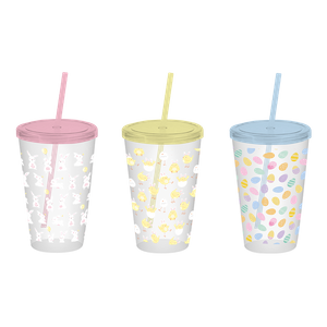 Each tumbler comes with a secure lid and reusable straw, making it great for both kids and adults to enjoy cold drinks on the go. The cheerful seasonal designs add a playful touch to any Easter table or gift basket.