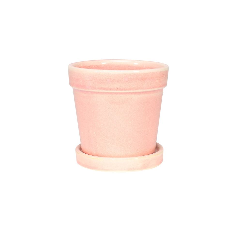Vintage Pink-Stoneware Painted Pot with Saucer (10x10cm)