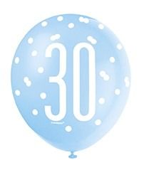 Assorted All Over Print Blue and Silver 30th Latex Balloon