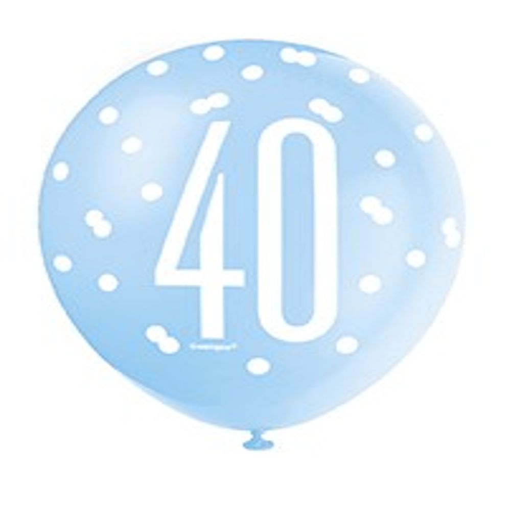Assorted All Over Print Blue and Silver 40th Latex Balloon