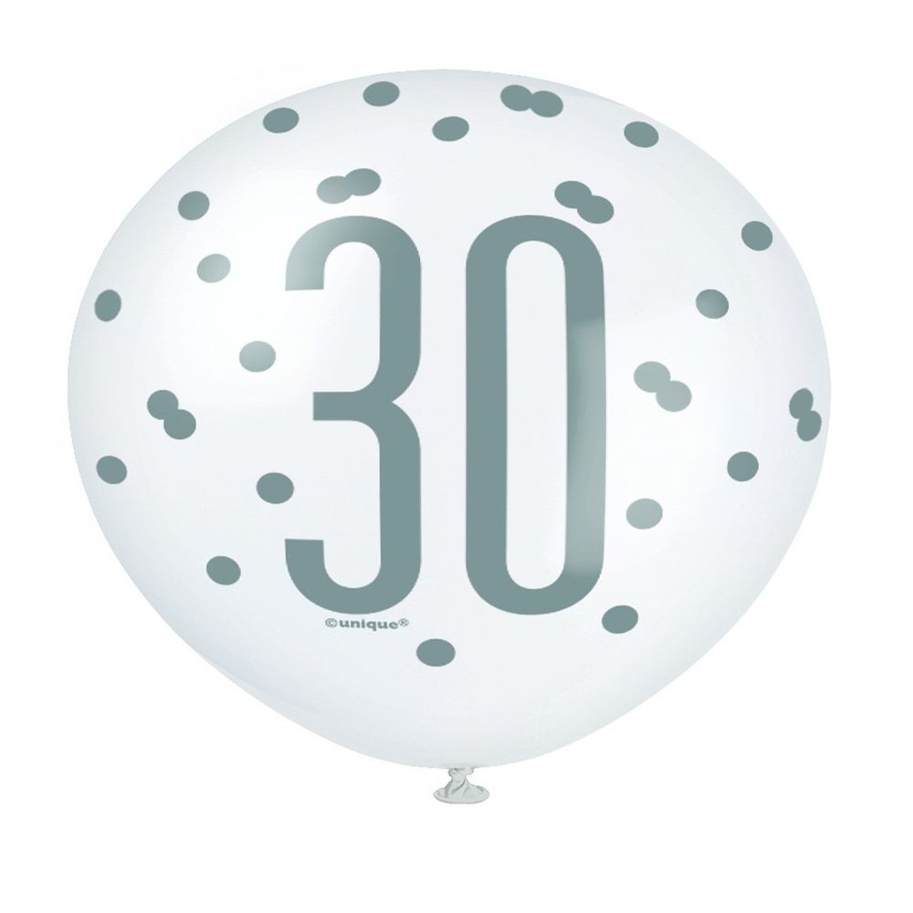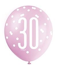Assorted All Over Print Pink and Silver 30th Latex Balloon