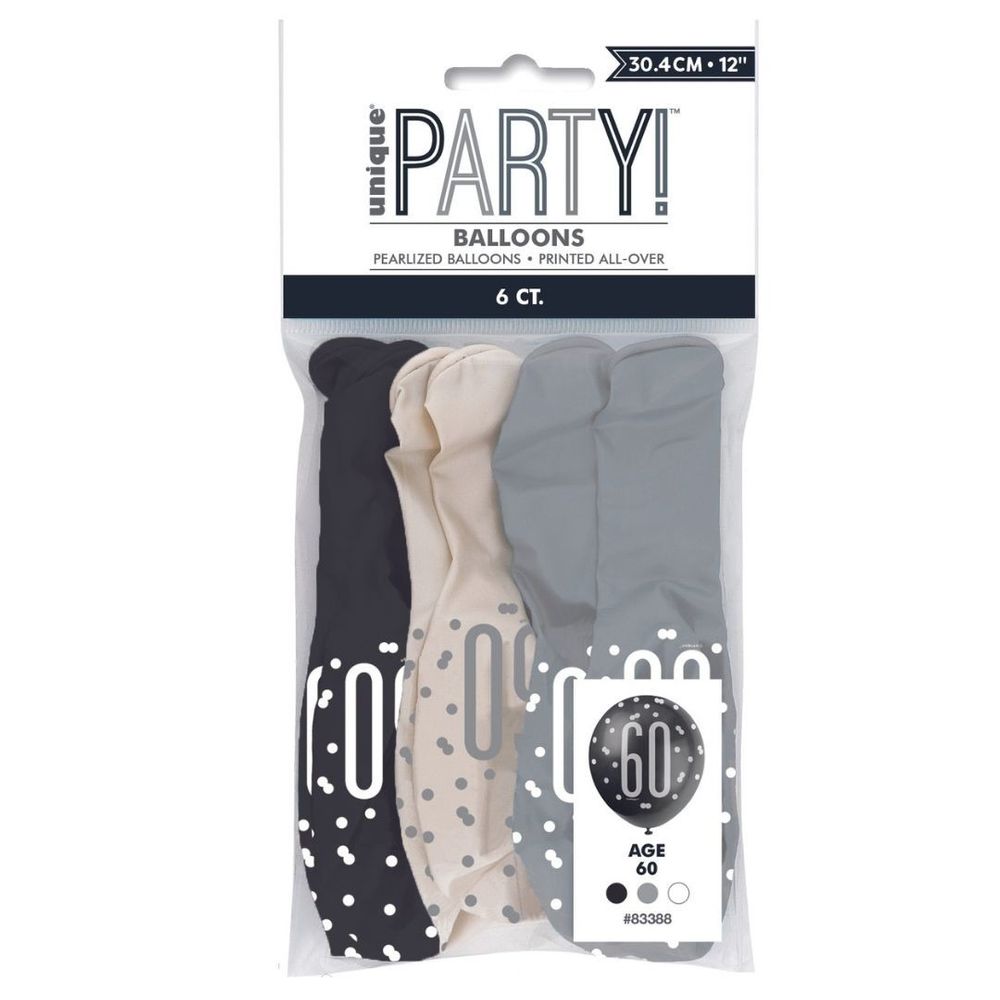 Assorted Black and Silver All Over Print 60th Latex Balloon