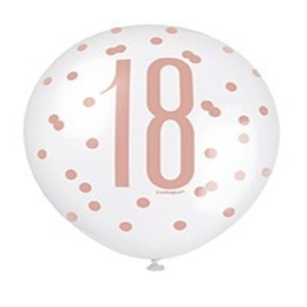 Assorted Rose Gold and White All Over Print 18th Latex Balloon
