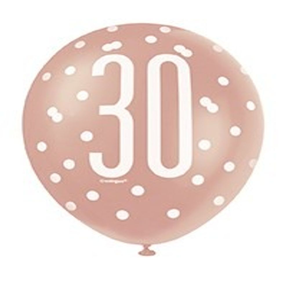Assorted Rose Gold and White All Over Print 30th Latex Balloon