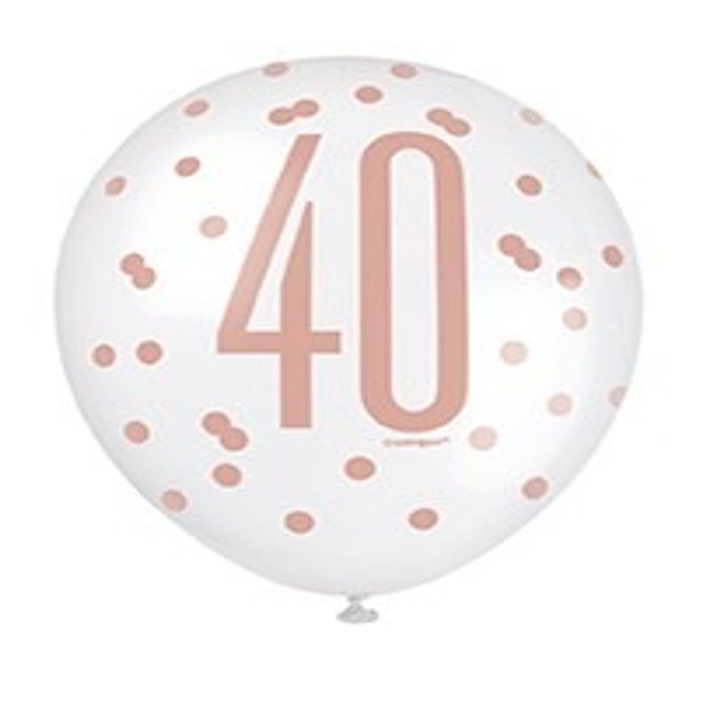 Assorted Rose Gold and White All Over Print 40th Latex Balloon