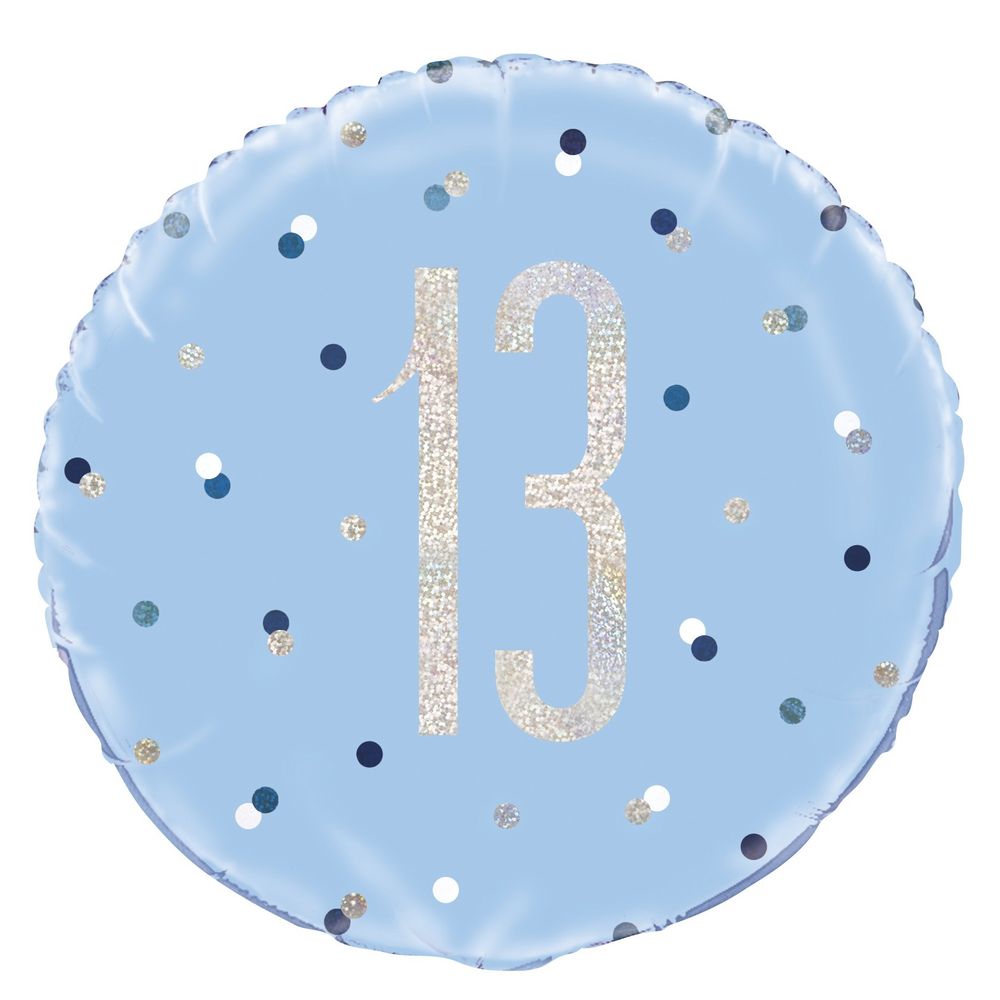 Celebrate your birthday in style with this blue and silver dot 13th birthday foil balloon.